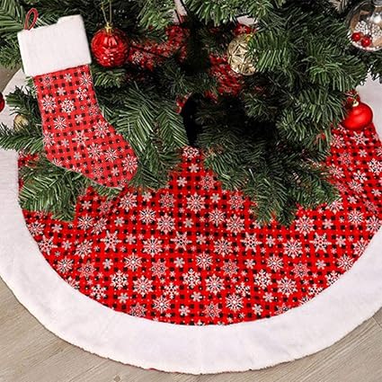 Yaobao Gonna Per Albero Di Natale 47 Pollici Gonna In Flanella Di Fiocco Di Neve Rossa Con Calza Decorazioni Natalizie Per Interni Per Esterni Amazon It Casa E Cucina