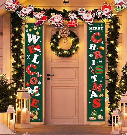 Idefair Buon Natale Striscioni Capodanno Decorazioni Natalizie Per Interni All Aperto Benvenuto Rosso Brillante Natale Portico Segno Appeso Decorazioni Per Feste Amazon It Casa E Cucina