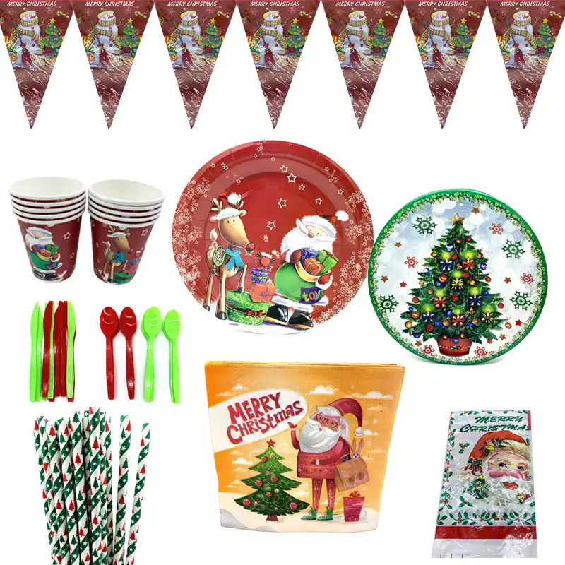 2021 Buon Natale Del Partito Stoviglie Usa E Getta Piatto Di Carta Tazze Tovaglioli Cannucce Di Banner Di Santa Pupazzo Di Neve Xams Albero Balloons Forniture Palloncini E Accessori Aliexpress