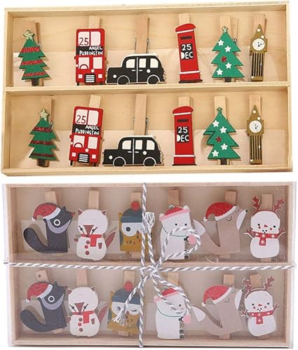 Amosfun 2 Scatole Mini Mollette Di Legno Mollette Di Natale Mollette Di Carta Fotografiche Con Mollette Per Appunti Per Decorazioni Natalizie Fai Da Te Amazon It Casa E Cucina